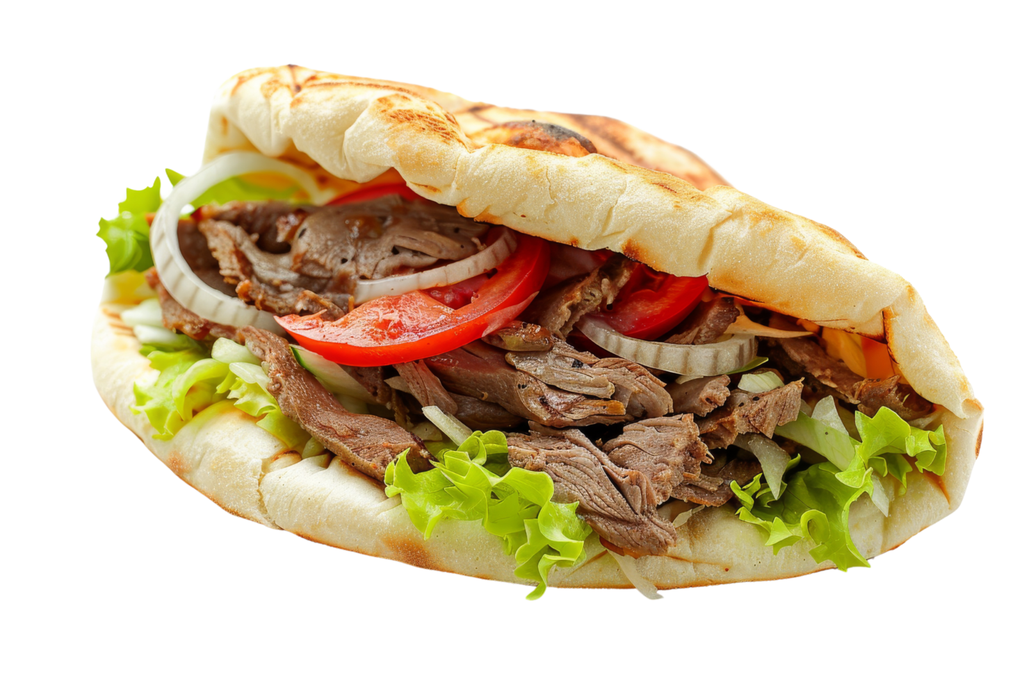 ۳۰۰ گرم کباب دونر گوشت مخلوط گوساله و گوسفندی،سس مخصوص،فلفل شمشیری،قارچ،گوجه،خیارشور،نان دونر